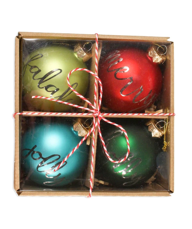 - Ornaments include; Holly, Jolly, Merry, Falala