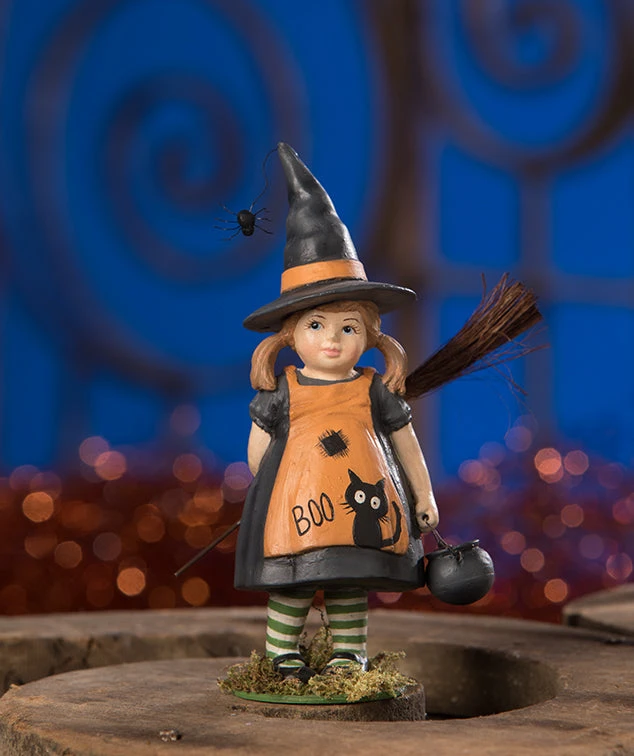 Winnie loves her witch costume nanna made, especially her orange pinafore. Create an adorable Halloween scene with Winnie Witch.