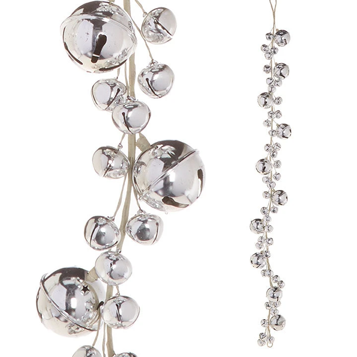 Drape this shiny Silver Bell Garland over sleigh props, trees or swag on the mantle for a festive Christmas touch.