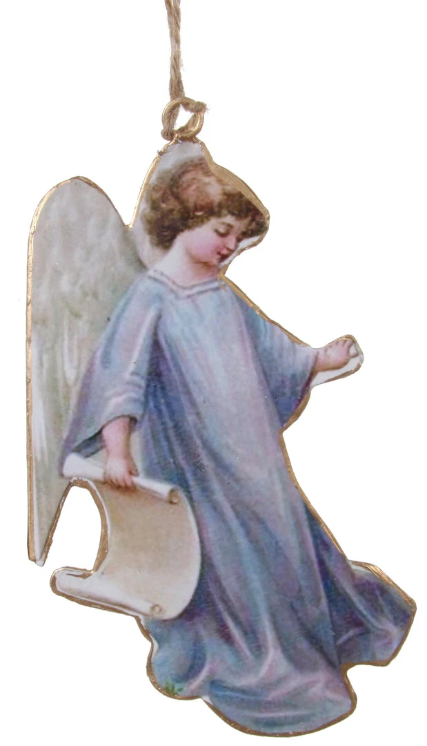Add a celestial feel to your Christmas tree with this metal ornament with a vintage Victorian angel image.