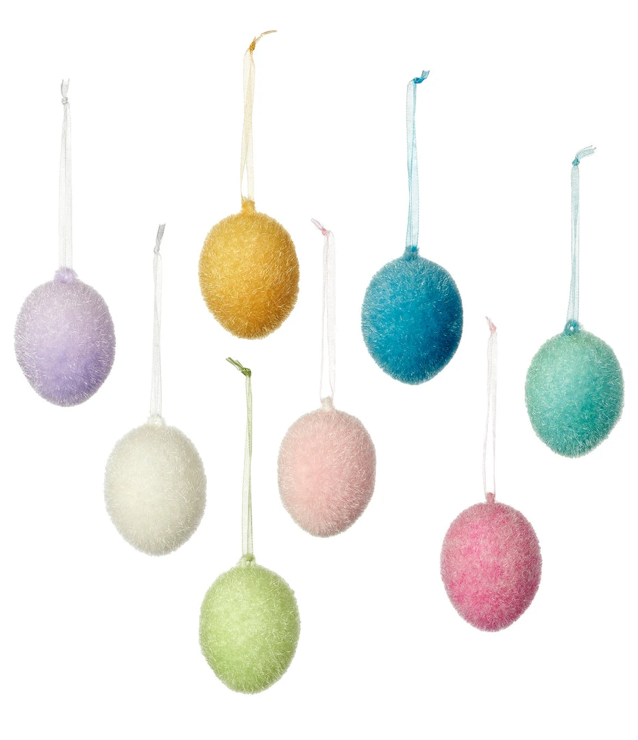 Get creative with these Flocked Egg Ornaments. Hang on branches for a colorful Easter tabletop centerpiece.