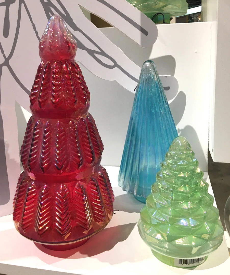 Make your holiday decorating fun with these jolly Jelly Glass Trees with iridescent finish.