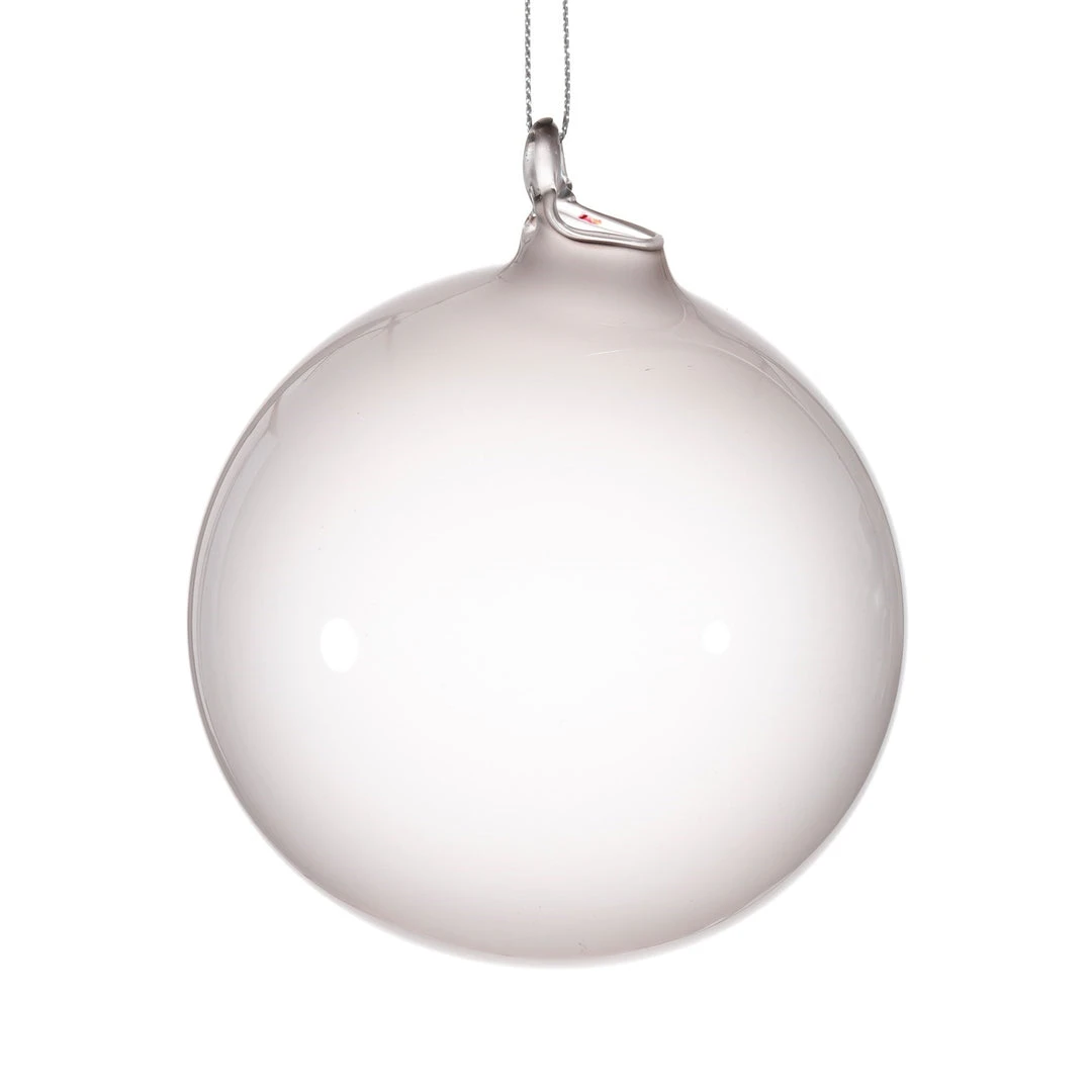 Chic light gray glass ball ornaments with the translucence of bubblegum.