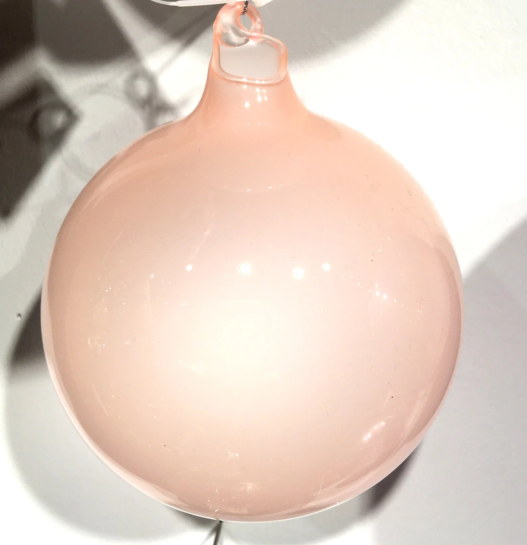Personalize your holiday decor with these hand-blown soft Pink Linen Bubblegum Glass Ball Ornaments by designer Jim Marvin.